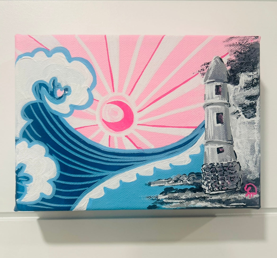 Gorgeous 5”x7” all original acrylic. This block canvas can stand alone or be perfectly displayed on a wall. Take a little piece of Laguna beach home with you!